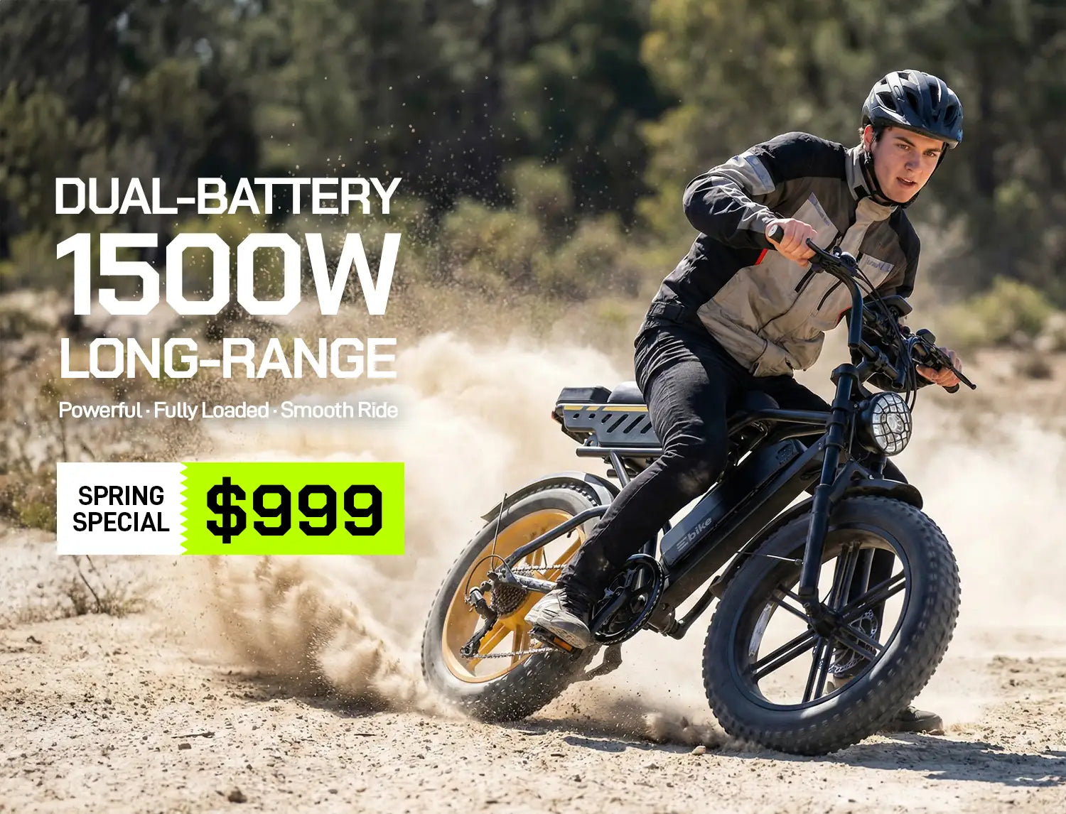 Fat 4-inch tires plus dual suspension float over gravel and potholes, turning rough terrain into a silky-smooth cruise.