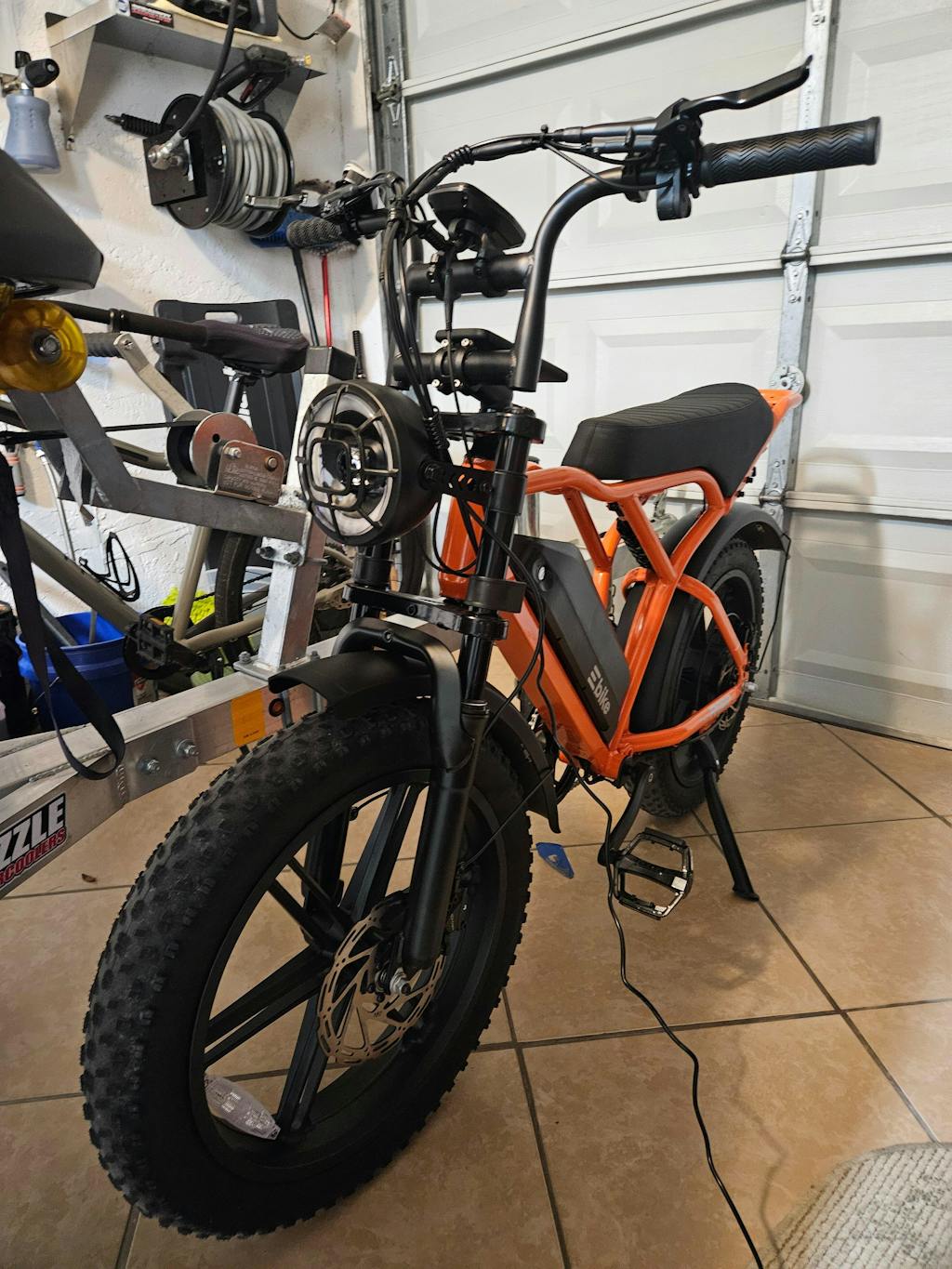 This e-bike is perfect for riding the trails in the woods or around my backyard. I’ve charged it a few times with no issues, and the suspension handles bumps really well, making the ride smooth and comfortable.The only small issue was that the box arrived a little damaged, which worried me at first. Luckily, the bike itself was fine with no scratches or damage at all.