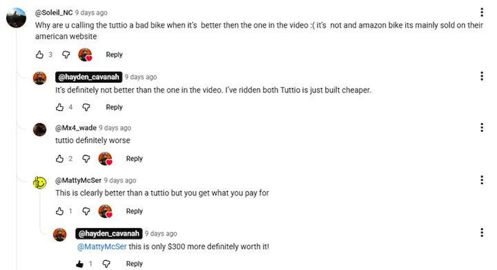 I've been shredding dirt bikes since I was 10. Currently got three bikes in my garage, including the Tuttio model people love to talk about in these YouTube screenshot debates. To be brutally honest, the Tuttio is 'fine' for a beginner's casual ride, but it doesn't even exist in the same universe as the TST GT63.