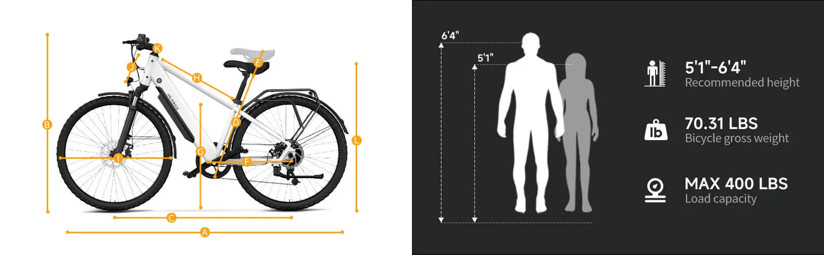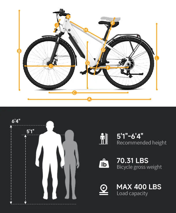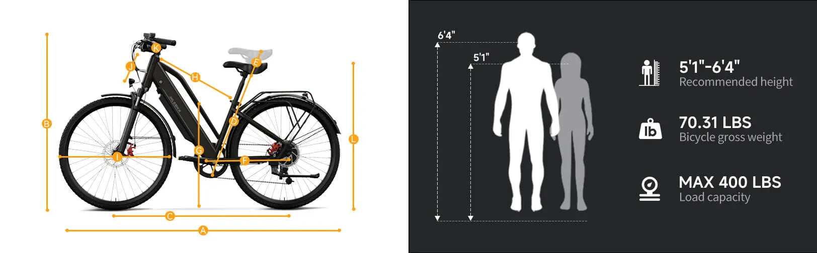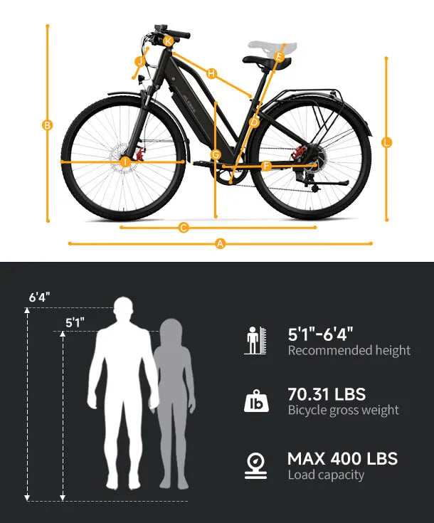 The TST C624 26'' City Ebike for Adults offers a range of impressive features. It boasts a powerful 1000W motor with a maximum speed of 23 mph, providing strong performance for urban commuting. The bike has a suggested rider height range of 5'1" to 6'4", making it suitable for a wide variety of users. It features a 26'' tire size, ensuring a smooth and stable ride. The C624 also includes a step-thru frame design, which is convenient for getting on and off the bike. Additionally, as part of the promotion, it comes with a free fender set and rear rack, adding extra value. With a max load capacity of 400 lbs, this ebike is both durable and practical for daily use.