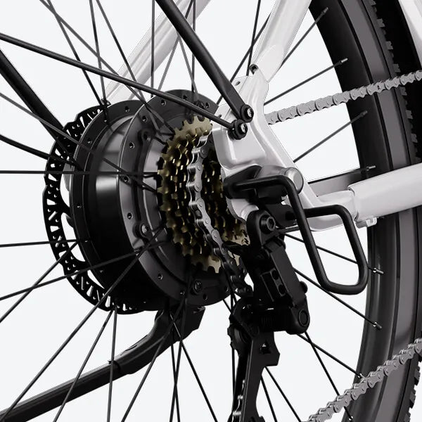 Step-thru frame for easy carry-ups; 1000W peak snaps you back to speed. Fast 26×1.95s, 7-speed, mechanical discs—city control, done.