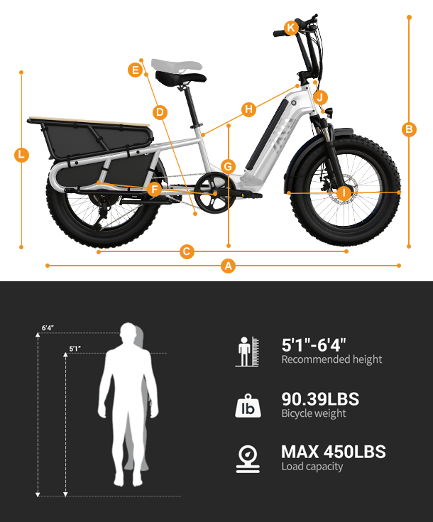 The TST® Carrier 20'' Cargo Electric Bike is a powerful and practical e-bike designed for both utility and enjoyment. It boasts a 1300W motor, capable of reaching speeds up to 28 mph and offering a range of 60 miles, making it perfect for long rides and heavy loads. The bike features a spacious carrier area, ideal for transporting cargo or passengers, and includes a free set of accessories valued at $534, such as a rear rack, fender set, children's seat, running boards, seat pad, and wheel guards. Its wide tires provide a smooth ride, while the easy assembly process ensures riders can get started quickly. With a one-year warranty and the option for local pickup in the US, this e-bike offers convenience, reliability, and excellent value for money.