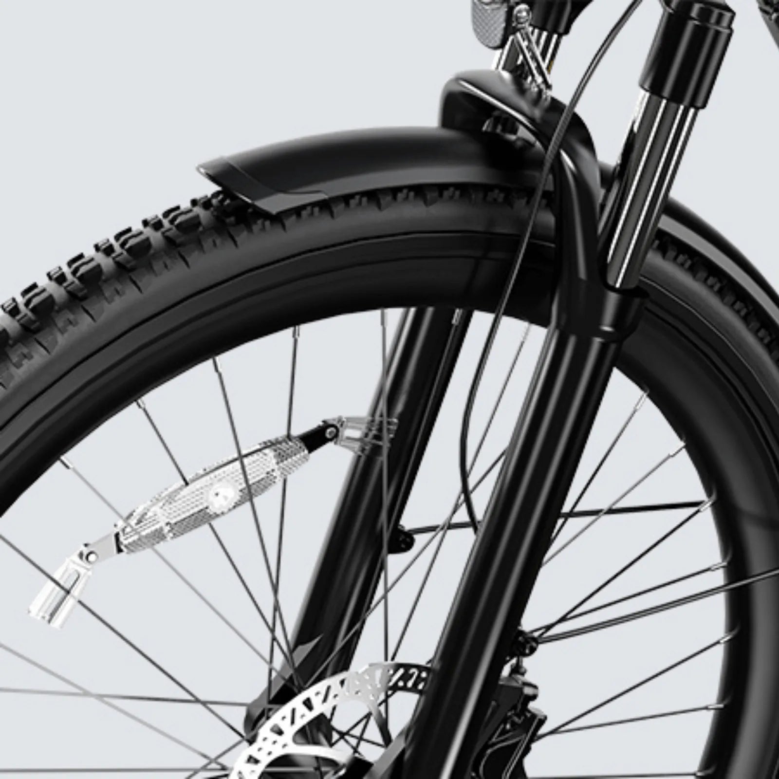 The TST® Flyer 27.5" Electric Bike is designed for effortless commuting with a powerful 1000W rear-wheel motor delivering 70Nm torque and a top speed of 23 mph. Equipped with a detachable 48V 15Ah lithium-ion battery, it offers up to 65 miles of range per charge and quick 4-5 hour charging. Its 27.5" x 2.25" puncture-resistant slim tires provide reliable grip on urban roads and light off-road trails. The front hydraulic suspension fork with 80mm travel ensures smooth rides over bumps. Featuring Shimano 7-speed shifting and a hydraulic dual disc brake system, the Flyer offers precise control and safety. Included accessories like a rear rack and fender set add convenience, making it an excellent choice for daily commuting and light adventure.