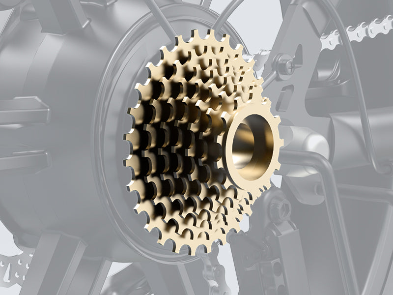 The R002 moped-style ebike includes a Shimano 7-speed gear system, providing versatile and precise shifting for a smooth, efficient ride.