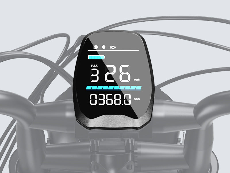 On this LCD, you can view information including your speed, battery life, pedal assist level, and distance traveled.