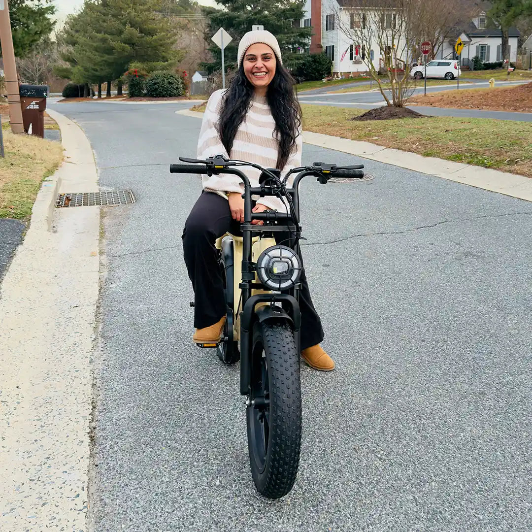 The TST R7 combines retro moped styling with a modern step-through frame for a comfortable, confident ride anywhere.