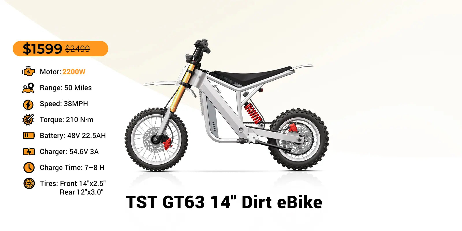 TST® GT63 14" 2200W 210Nm Electric Dirt Bike