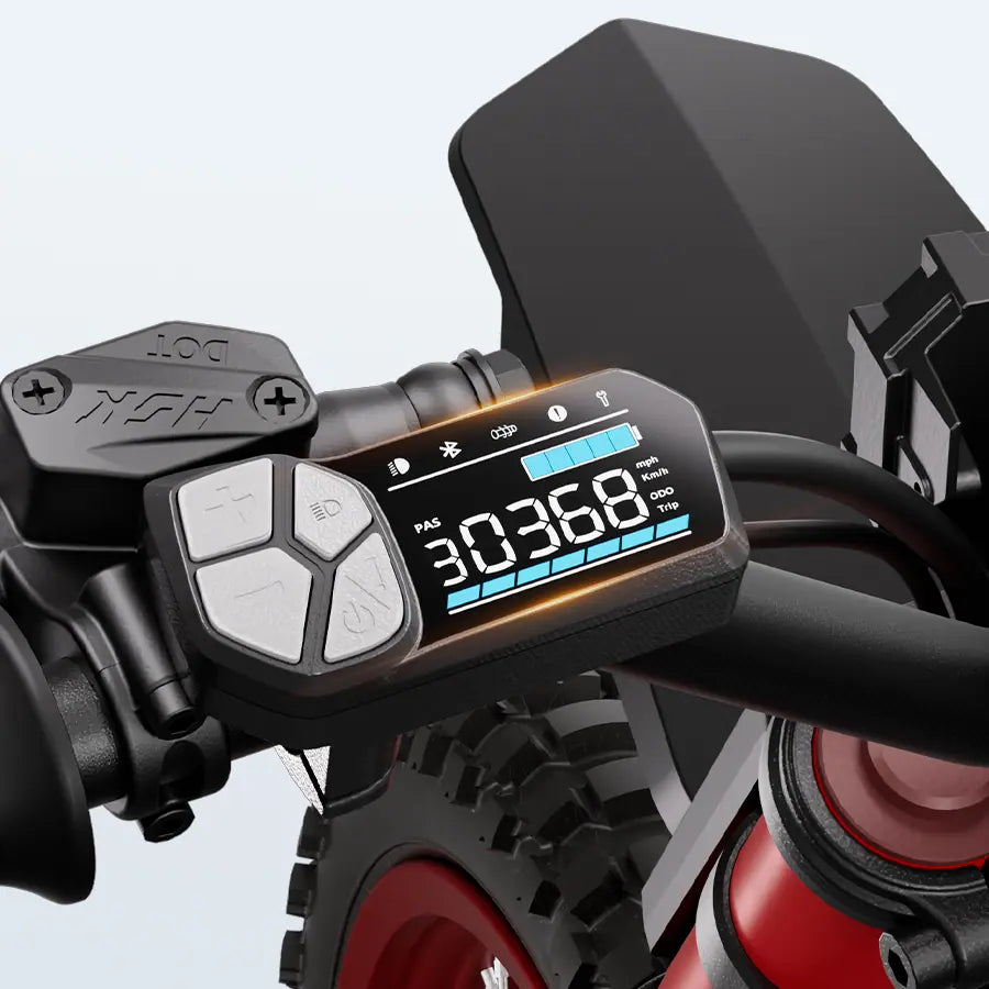 Equipped with a smart display with key ignition, three riding modes (Cruise / Explore / Sport), and a bright headlight, this mini dirt bike keeps you informed, visible, and in control at all times. Perfect for outdoor fun, backyard tracks, or off-road adventures — the GT73 delivers excitement, safety, and style in one compact ride.