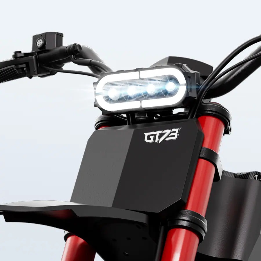 The GT73 is a small electric off-road bike built for both kids and adults. It’s lightweight, powerful and great for backyard rides and trail adventures.