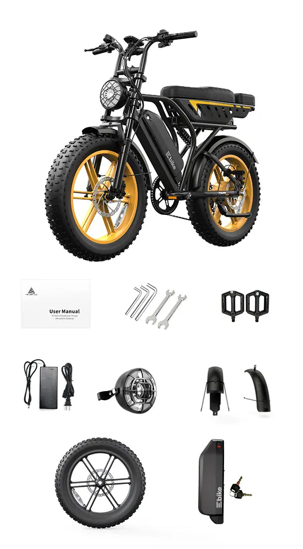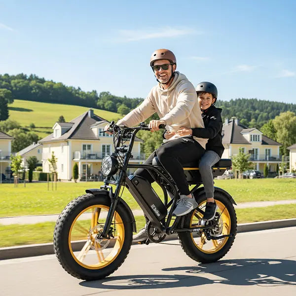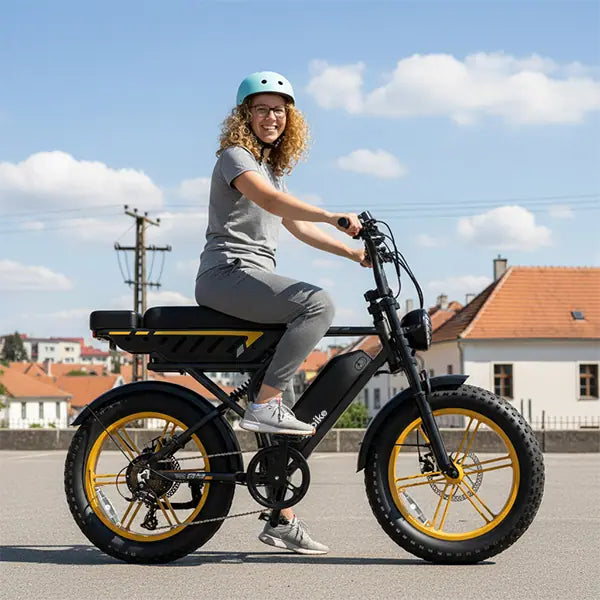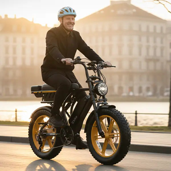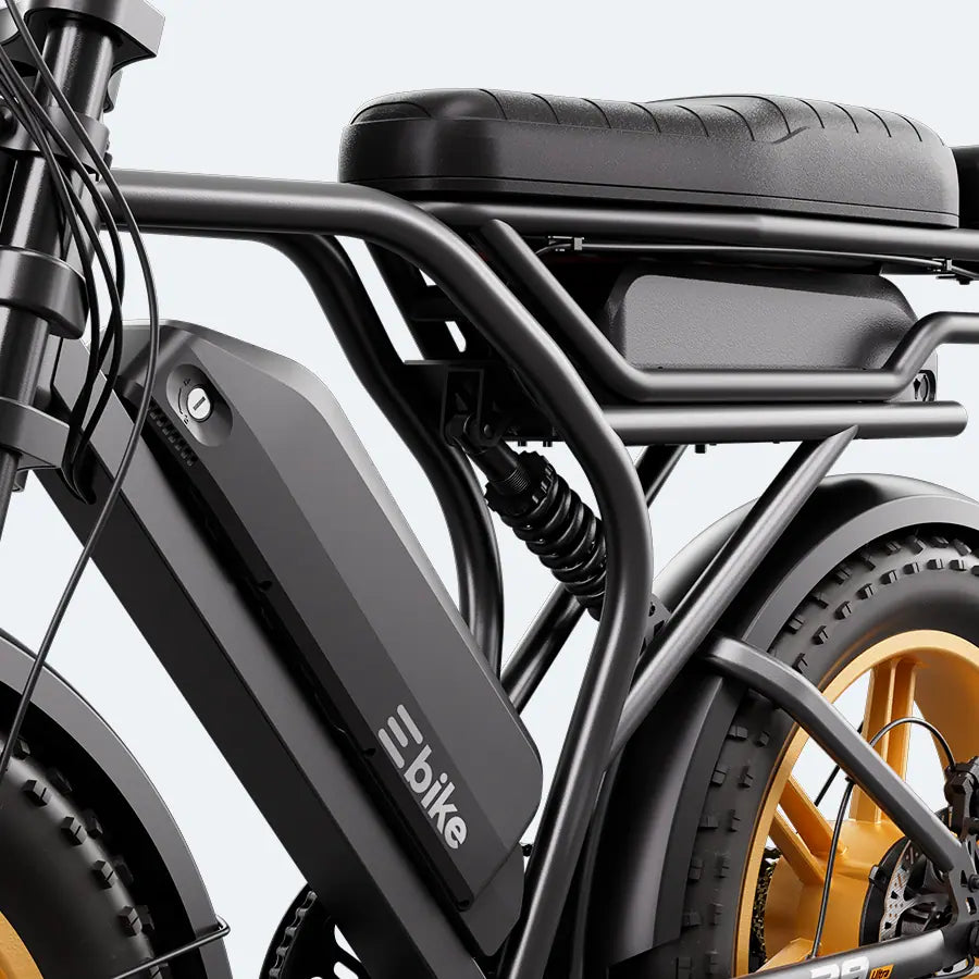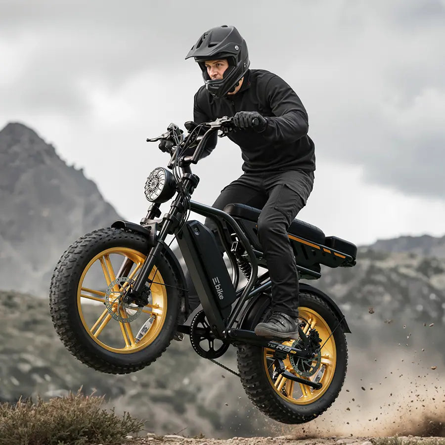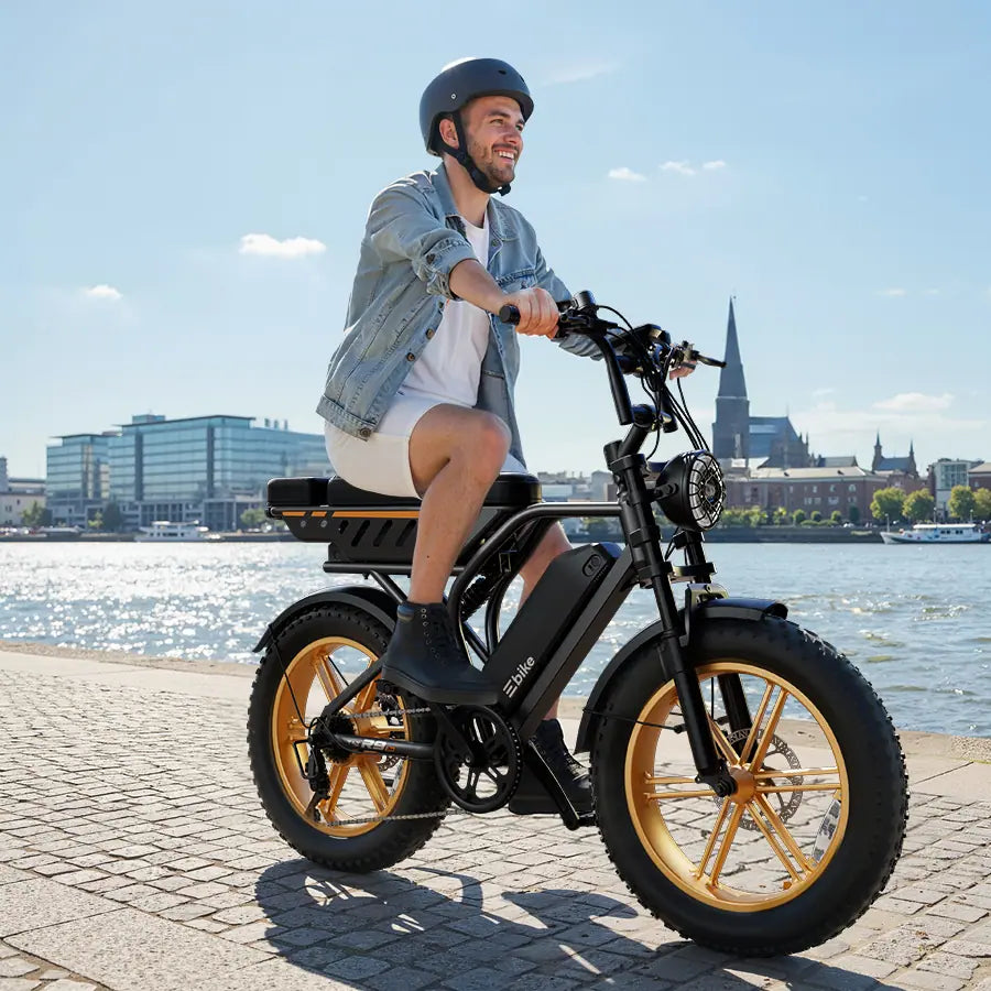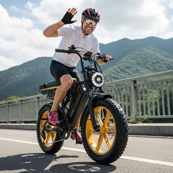 Built with 4.0-inch all-terrain fat tires, this electric bike delivers superior grip and stability from the city to off-road adventures—absorbing bumps, improving balance, and keeping every ride smooth and in control.